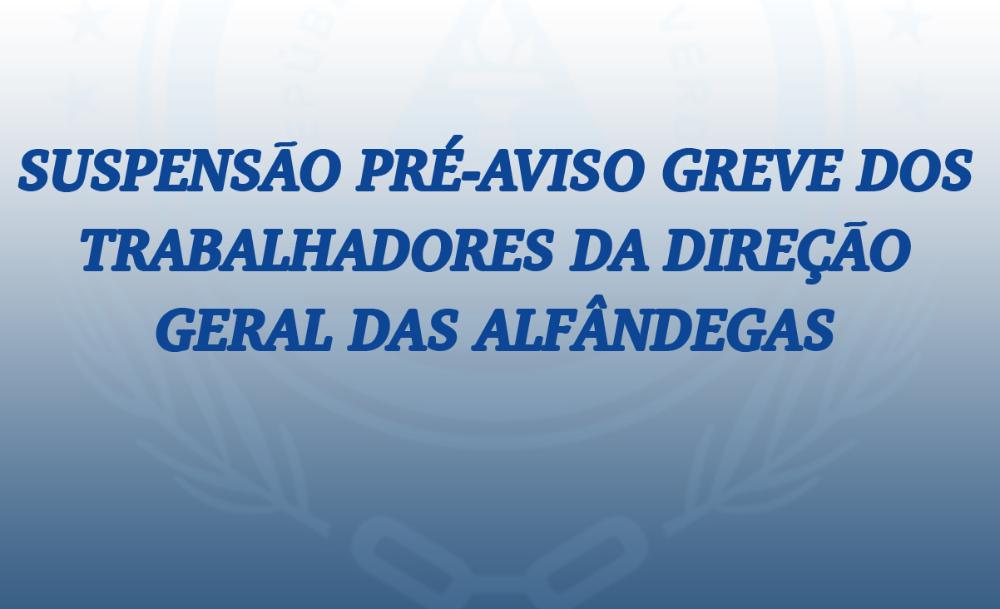 É com satisfação que tomamos conhecimento da suspensão do pré-aviso de greve dos trabalhadores da Direção Geral das Alfândegas, na sequência do diálogo e concertação havidos com o Ministério das Finanças e do Fomento Empresarial.