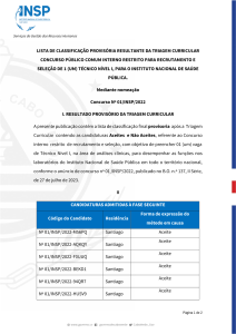 Concurso Nº01_INSP_2022_Interno Restrito_Técnico Nível I_Análises Clinica