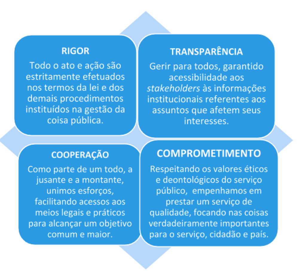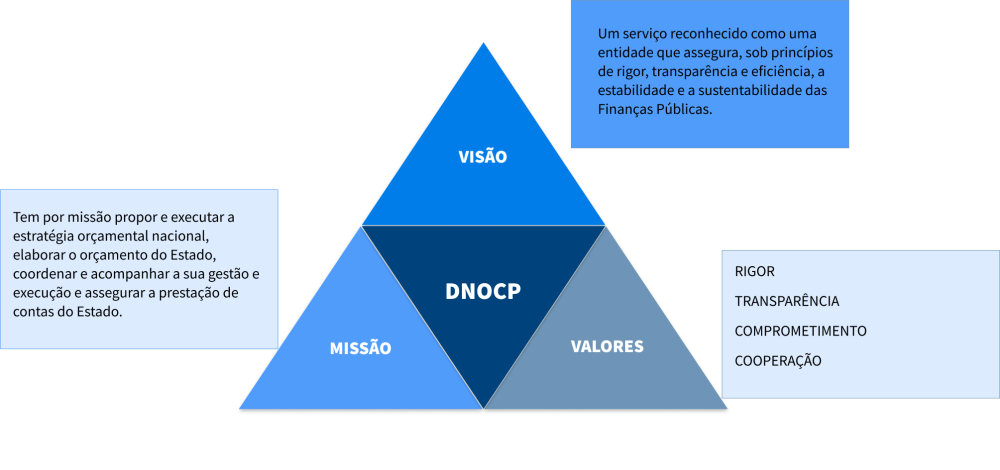 Para levar a cabo a sua missão, e tendo sempre em conta a sua visão, a equipa da DNOCP é movida por quatro valores basilares que devem estar presentes em cada decisão, ato ou ação: