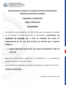 15 Terceiros Secretários de Embaixada - Legislações - Direção Nacional Administração Pública