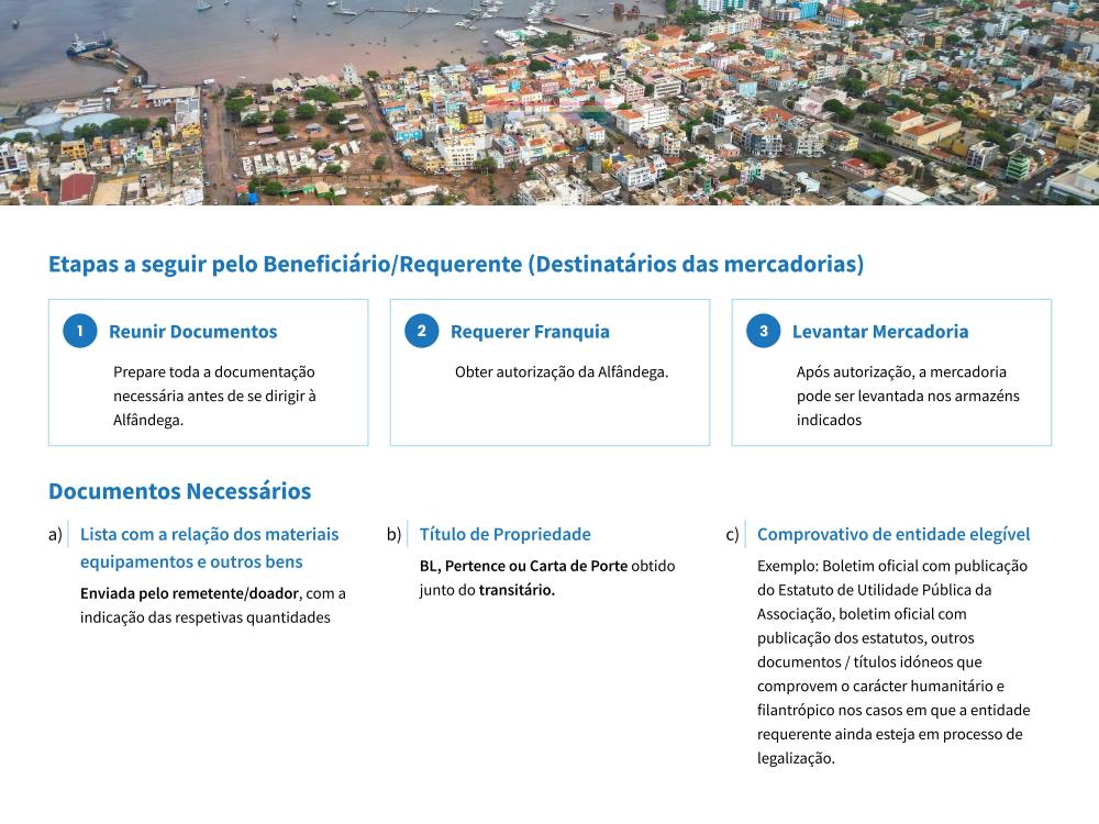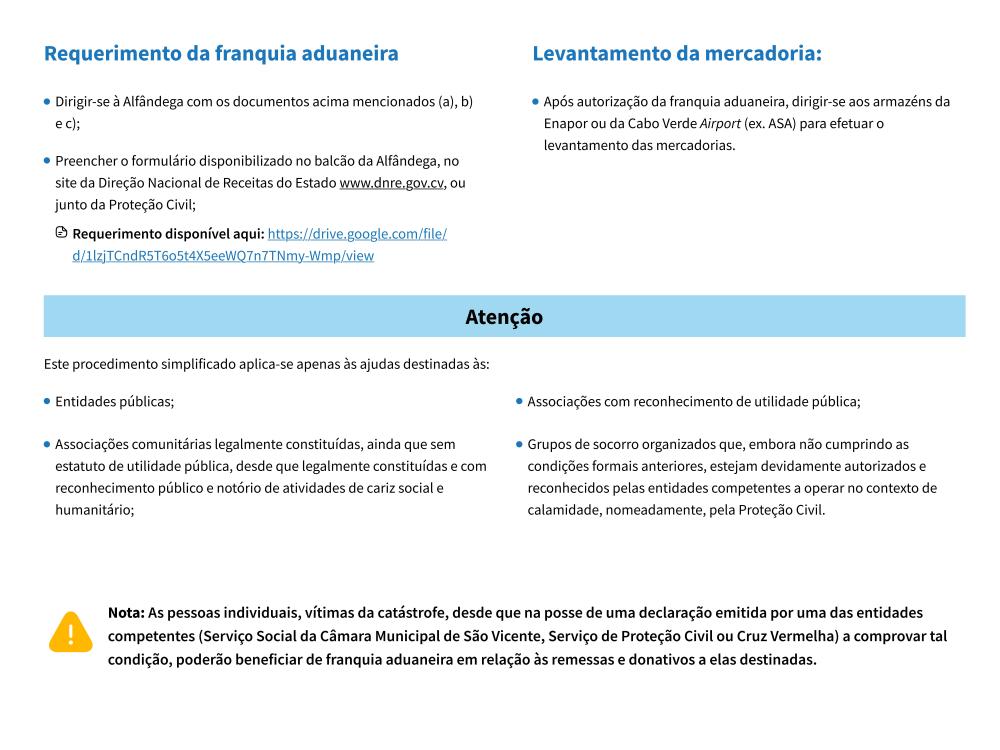 Na sequência do Estado de Calamidade declarado pelo Governo, foi implementado um regime aduaneiro excecional, simplificado e com custos reduzidos, aplicável às remessas de ajuda humanitária destinadas às populações afetadas.