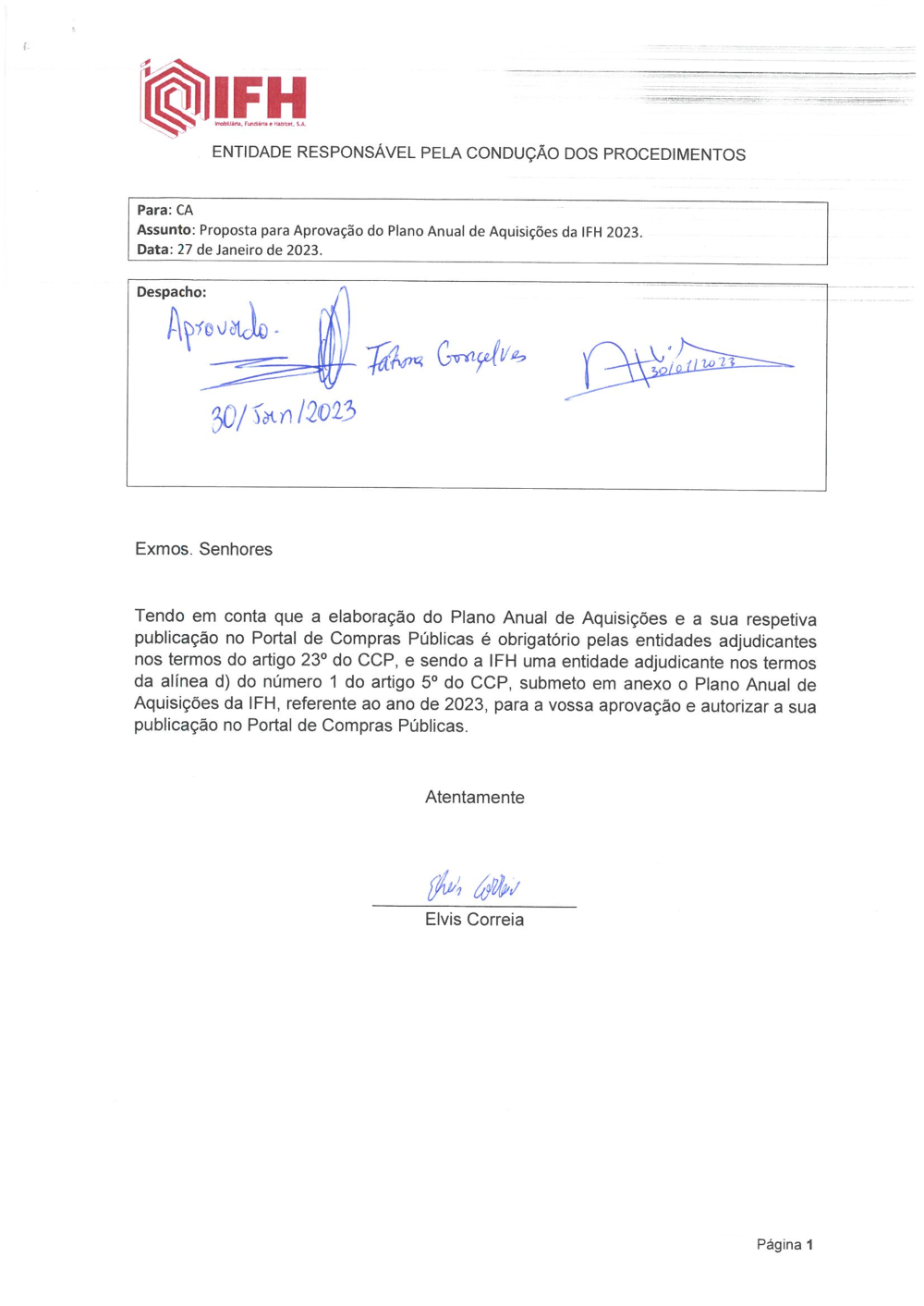 Plano Anual de Aquisições IFH para o ano de 2023.