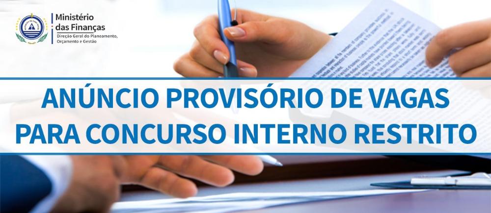O Ministério das Finanças, torna público que existem 15 vagas para a abertura de dois concursos públicos comuns, internos restritos de para pessoal Assistente Técnico Nível VIII.