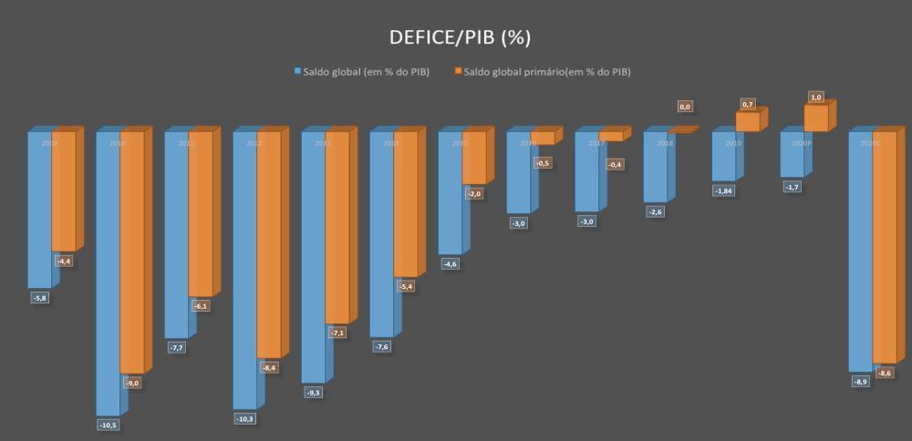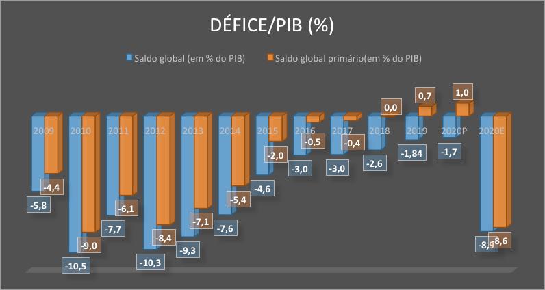 O gráfico a seguir mostra que, desde 2009, o nível do défice era extremamente elevado, para uma economia como Cabo Verde. Foi a partir de 2016 que se começou a observar um nível de défice mais sustentável, sendo que foi a partir dali que se começou a observar uma efetiva consolidação das finanças públicas.