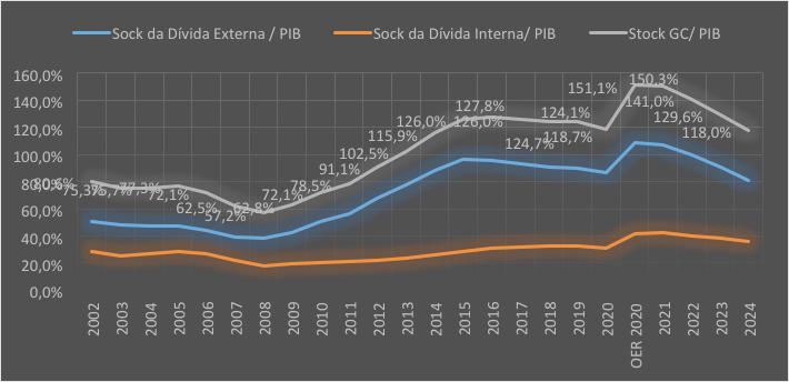 Esta é a história macro da dívida pública, sem filtro e sem demagogia. Entretanto, deve-se referir ainda a análise do stress da dívida, em que se mostra a preocupação da acumulação da mesma.