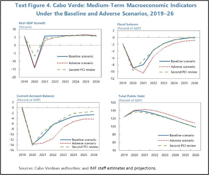 Antes da pandemia, no relatório da missão do FMI, a conclusão sobre a dívida pública era taxativa: “Tendo em conta o impacto das reformas das Empresas Públicas, nos empréstimos de retrocessão e nas capitalizações, projeta-se que as necessidades de financiamento diminuam de 5% do PIB em 2019 para 0,7% do PIB em 2024, o que irá contribuir para reduzir o stock da dívida pública de 123% do PIB em 2019 para 91,9% do PIB no final de 2024”. Por sua vez, já acautelando os efeitos da pandemia, o FMI salientou que “A trajetória orçamental e de sustentabilidade da dívida a médio prazo tem sido negativamente afetada pelos constrangimentos gerados pela crise sanitária. O quadro orçamental foi inicialmente construído com base na melhoria contínua do saldo primário através de um melhor desempenho das receitas e gestão das despesas, combinado com um maior espaço orçamental para o investimento público apoiar o crescimento. Através destas ações, e projetando um crescimento sustentado a médio prazo, o Governo esperava alcançar o seu objetivo de reduzir a dívida pública para menos de 100% do PIB até 2023. A COVID-19 veio alterar significativamente este quadro de médio prazo. A posição orçamental enfraqueceu e a contratação de empréstimos adicionais para cobrir o declínio acentuado das receitas e as despesas adicionais, juntamente com a contração do crescimento do PIB real, contribuíram para um aumento da dívida pública para um nível projetado de 151,1 por cento do PIB no final de 2020, em comparação com 118,1 por cento do PIB sugerido inicialmente.”