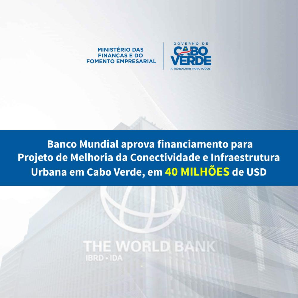 O Conselho de Administração do Banco Mundial aprovou, em 21 de novembro de 2023, um financiamento, no valor total de 40 milhões de dólares americanos, para o Projeto de Melhoria da Conectividade e Infraestrutura Urbana em Cabo Verde.