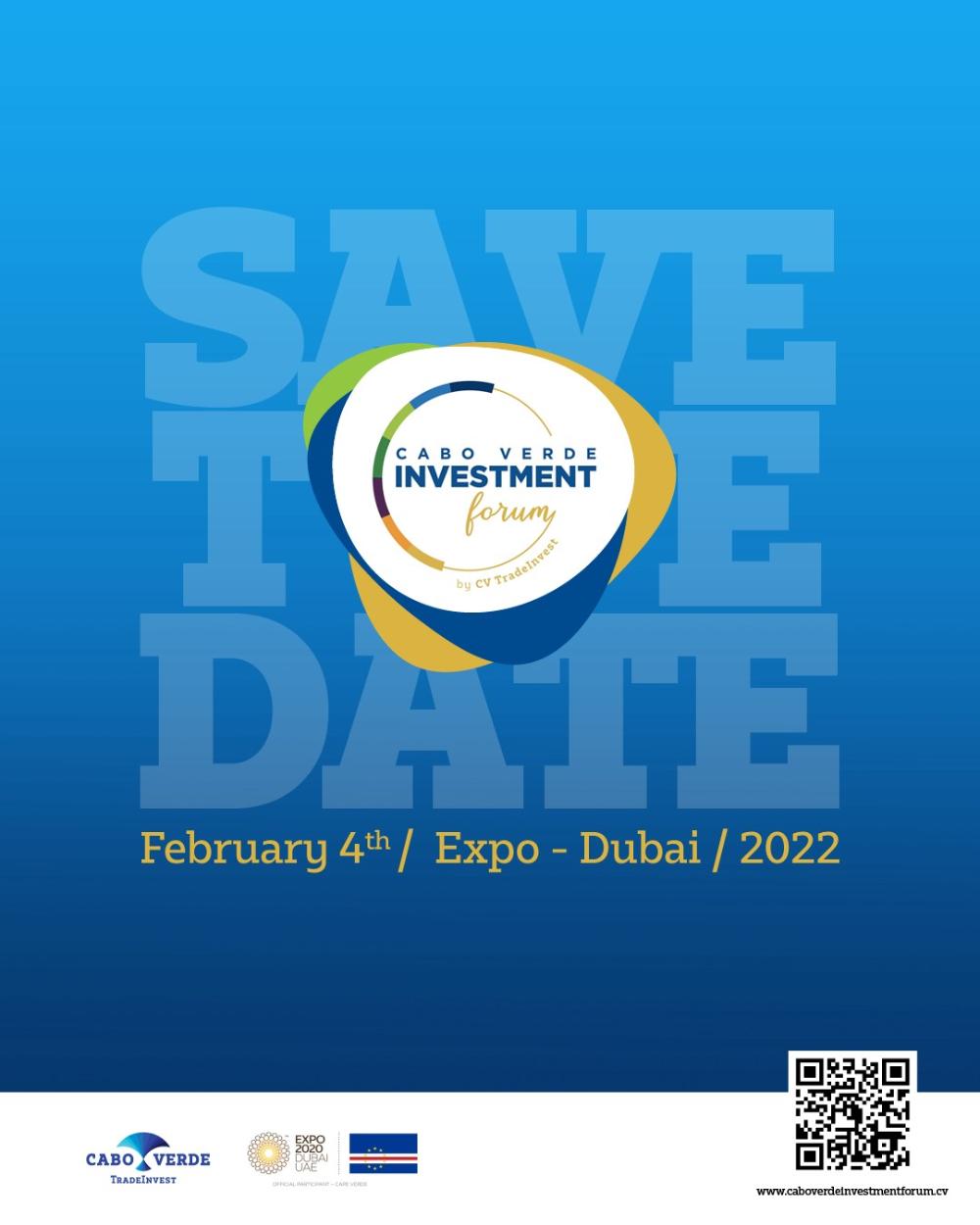 Realiza-se a 4 de Fevereiro, o Cabo Verde Investment Forum (CVIF), organizado pelo Governo de Cabo Verde, através da Cabo Verde TradeInvest, na feira mundial Expo 2020 Dubai. O evento, com o alto patrocínio do Gabinete do Primeiro Ministro, do Vice-Primeiro Ministro e do Ministro das Finanças, conta com o apoio do Comissariado Nacional da Expo 2020.