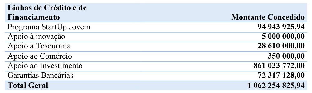 . Constituição de várias Linhas de Crédito e de Financiamento às empresas;