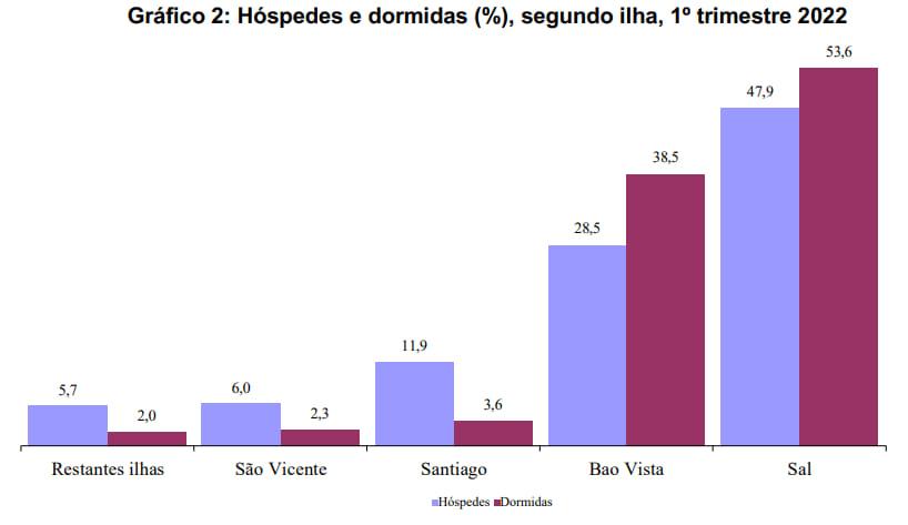 O turismo, como um dos setores com maior dinâmica no crescimento económico e social em Cabo Verde, teve no primeiro trimestre de 2022 um crescimento considerável face ao período homólogo, tendo a hotelaria registado mais de 141 mil hóspedes, correspondendo a um aumento de 1 071,0%, e no que tange às dormidas, atingiu-se 844 440, correspondendo a um aumento de 2908,2%, no mesmo período.