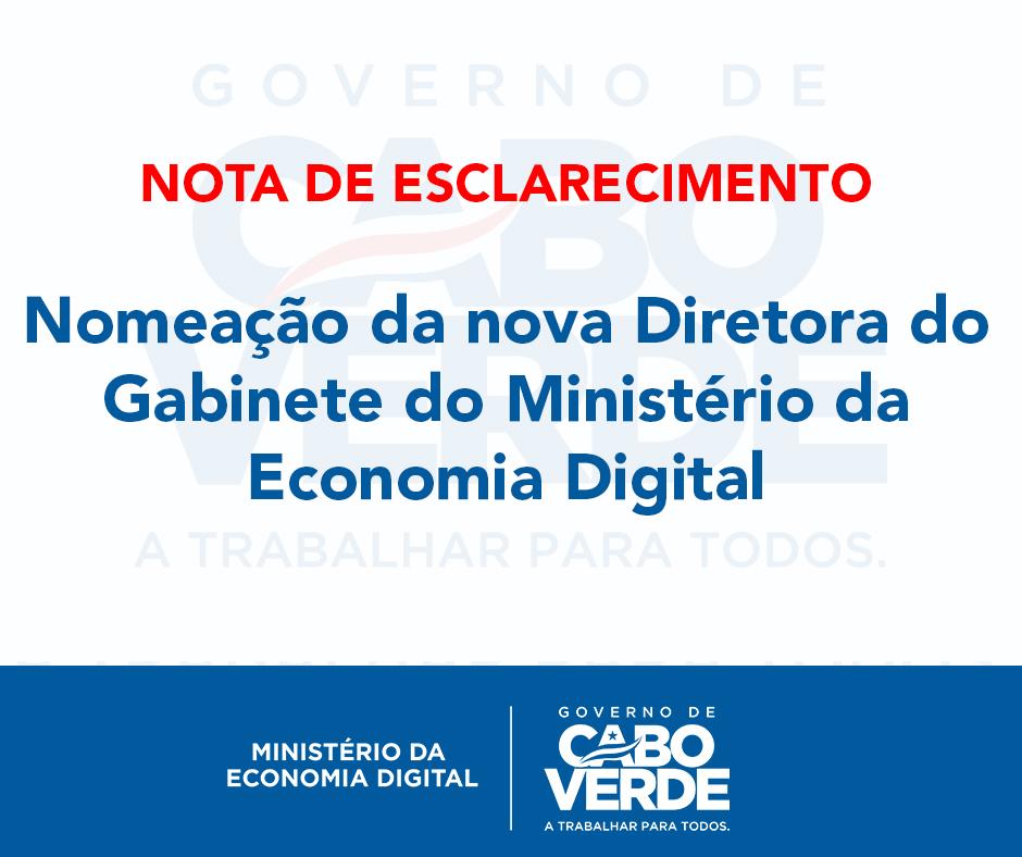 Na sequência das informações que têm sido veiculadas sobre a exoneração de uma das Secretárias do Gabinete do Vice-Primeiro-ministro, Ministro das Finanças e do Fomento Empresarial e Ministro da Economia Digital, vimos esclarecer o seguinte: A exoneração da Dra. Vânia Barros nas funções de Secretária do referido Gabinete, publicada na última semana em Boletim Oficial (BO), é uma operação meramente administrativa, considerando que a mesma foi nomeada para assumir as funções de Diretora do Gabinete do Ministro da Economia Digital e aguarda a respetiva publicação em BO.