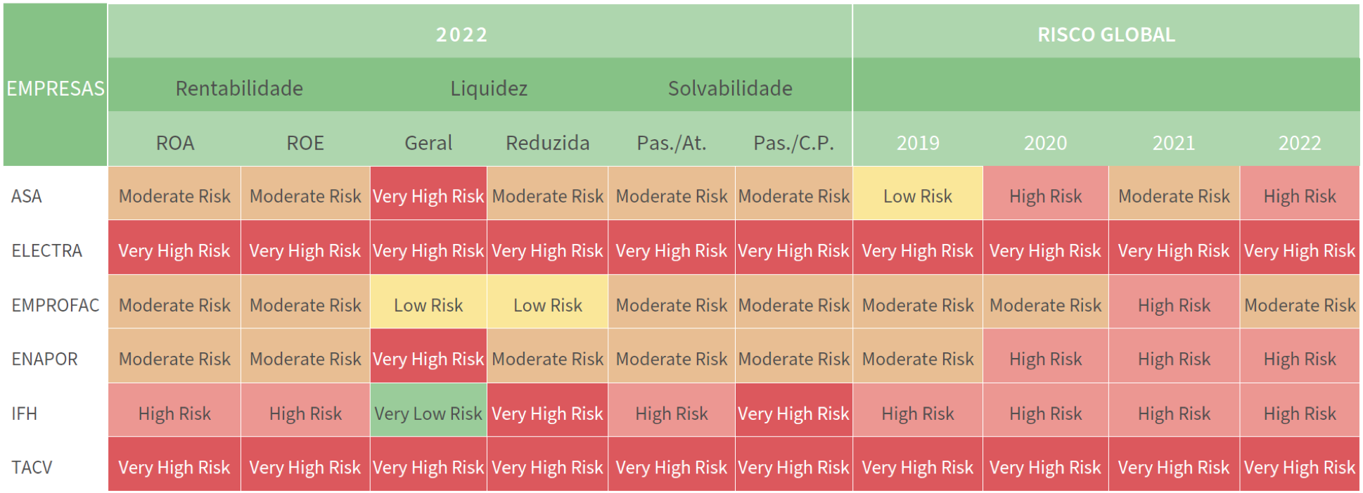 Tabela 1 – Mapa de calor com risco esperado para 2022 das 6 maiores empresas do SEE.
