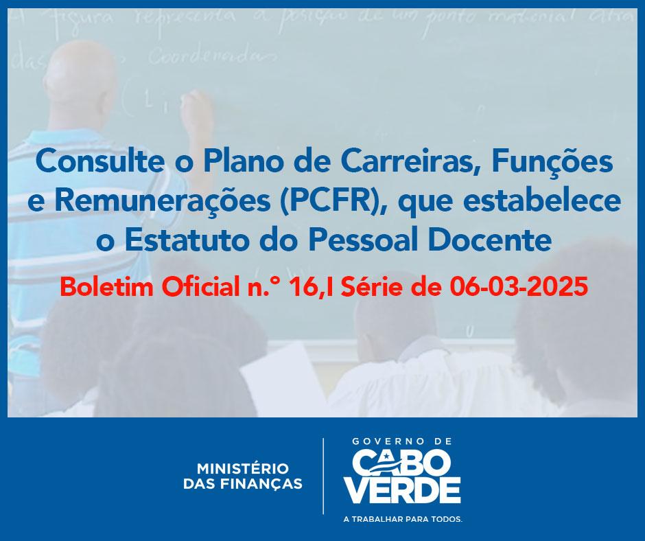 Consulte o Plano de Carreiras, Funções e Remunerações (PCFR), que estabelece o Estatuto do Pessoal Docente Boletim Oficial n.º 16, I Série de 06-03-2025