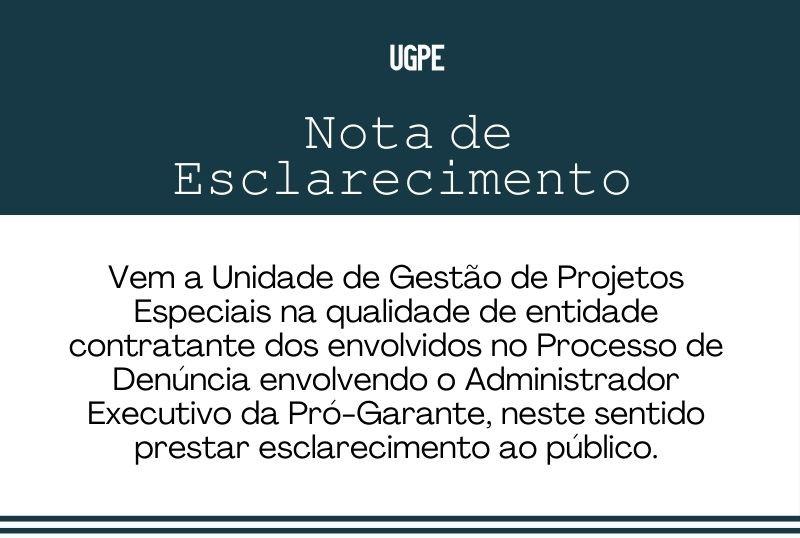 • Relativamente ao processo envolvendo o Consultor contratado pela UGPE, via concurso público internacional, no âmbito da implementação do projeto “Acesso a Financiamento para as Micro, Pequenas e Médias Empresas”, financiado pelo Banco Mundial, para exercer as funções de Administrador Executivo da Pró-Garante, é de se esclarecer que, após ter recebido a grave denúncia, a UGPE, cumprindo com os procedimentos estabelecidos pela entidade financiadora aquando da negociação do referido projeto, fez a categorização da mesma e encaminhou o caso para averiguações junto das entidades competentes na matéria;
