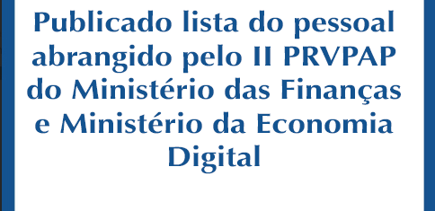 Pela presente, somos a partilhar a lista do pessoal abrangido pelo II PRVPAP do Ministério das Finanças e Ministério da Economia Digital, para conhecimento e devidos efeitos.