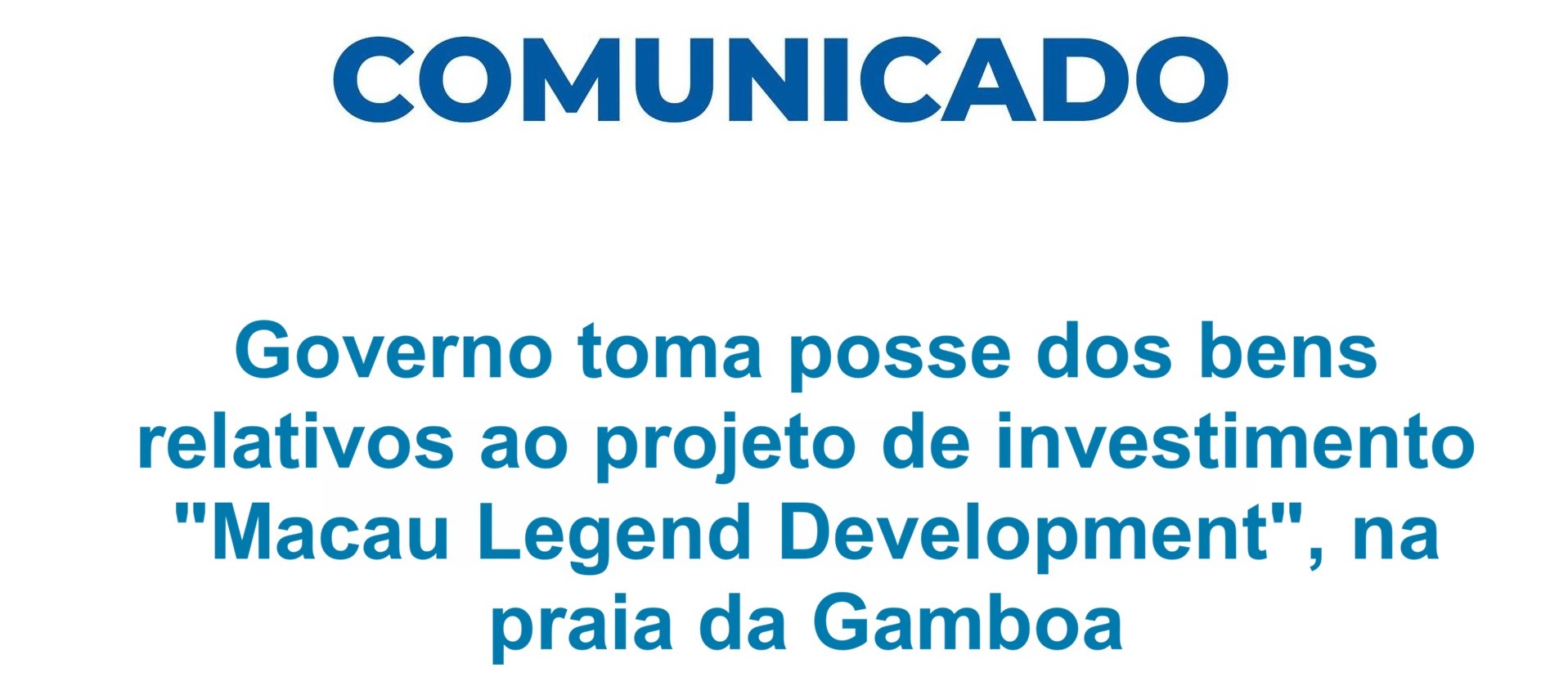 GOVERNO TOMA POSSE DOS BENS RELATIVOS AO PROJETO DE INVESTIMENTO "MACAU LEGEND DEVELOPMENT", NA PRAIA DA GAMBOA